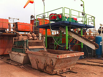 1)將螺旋輸送機安裝于鉆機固控振動篩之下,通過螺旋輸送機或冠能鉆屑輸送設備將鉆屑輸送給冠能鉆屑干燥篩進行處理。