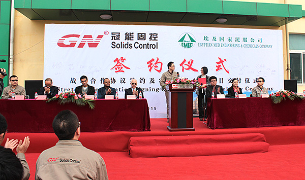 2015年3月12日,冠能固控埃及國家泥服公司在中國北京冠能公司總部簽署戰略合作協議,為此冠能固控舉辦了盛大了簽約儀式,儀式也包括了一大批離心機的成功交付。