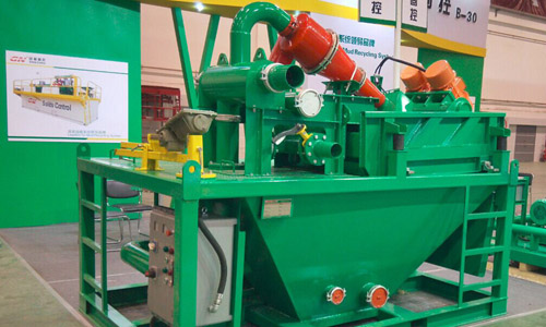 該系統(tǒng)的一級凈化設備是雙層直線振動篩,直線振動篩的工作原理是篩箱做直線振動,當泥漿進入篩箱后,通過篩網(wǎng)過濾對于篩網(wǎng)孔徑的固相顆粒被排出,泥漿則通過篩網(wǎng)進入泥漿罐,一級凈化結束;再由砂泵抽取泥漿罐里的泥漿給旋流器,通過離心旋流分離將泥漿中的固相顆粒進一步分離,分離后的固相經(jīng)過振動篩的上層篩網(wǎng)干燥后排出罐外,凈化后的泥漿通過溢流管匯排到儲漿罐里。除砂旋流器的處理后的液相是干凈的,并且可以被泵回至鉆孔以便重復利用。